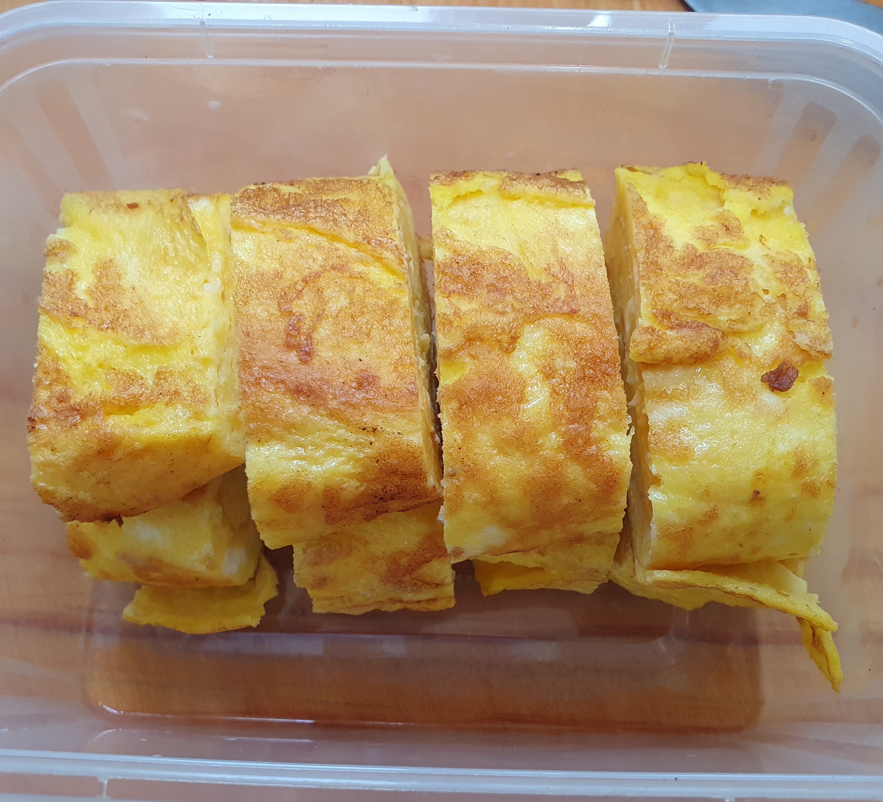 10. 남은 계란은 아까우니 계란 2개를 더 추가해서 계란말이를 만들었습니다.