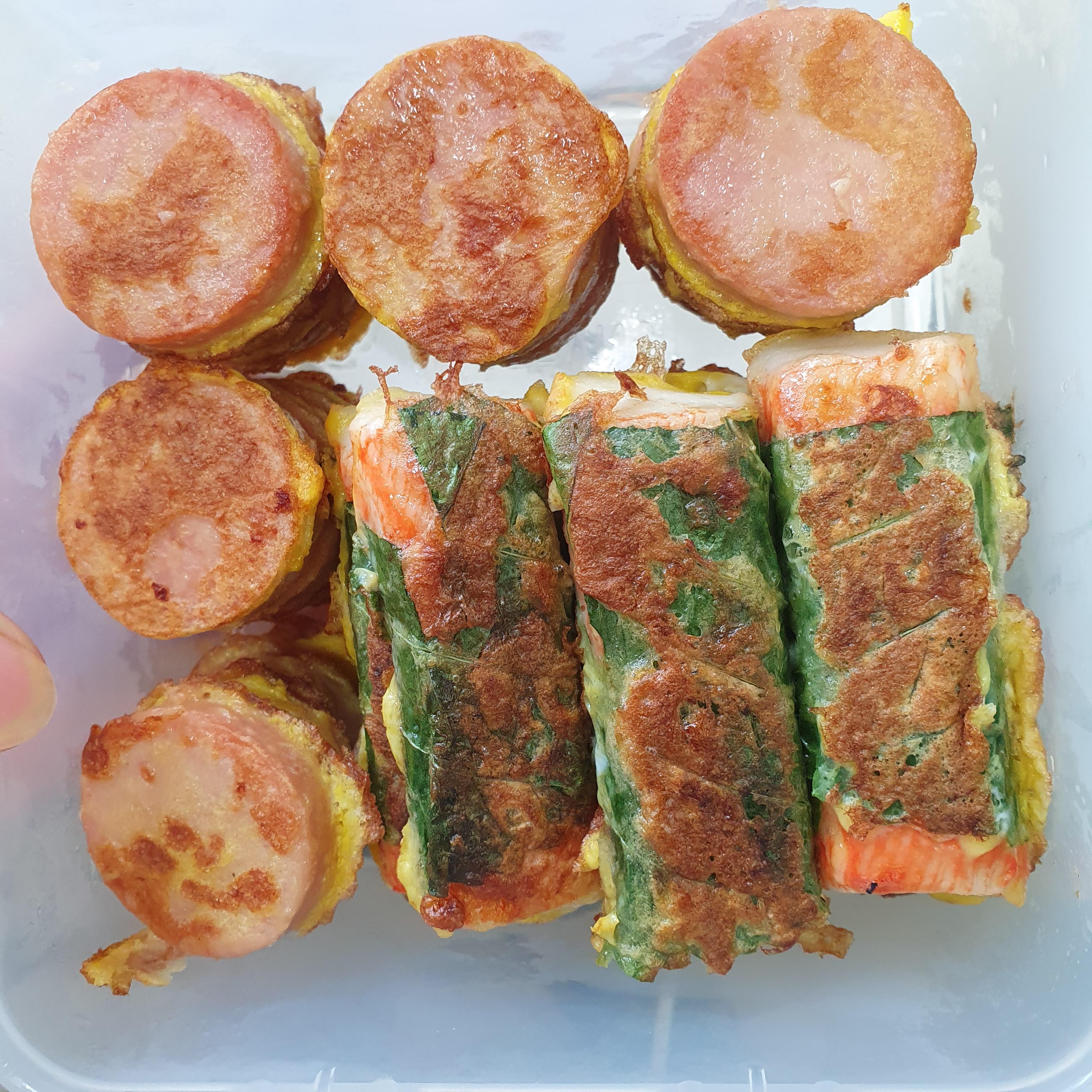 재료 : 맛살(크래미) 2팩, 깻잎, 소세지 2개