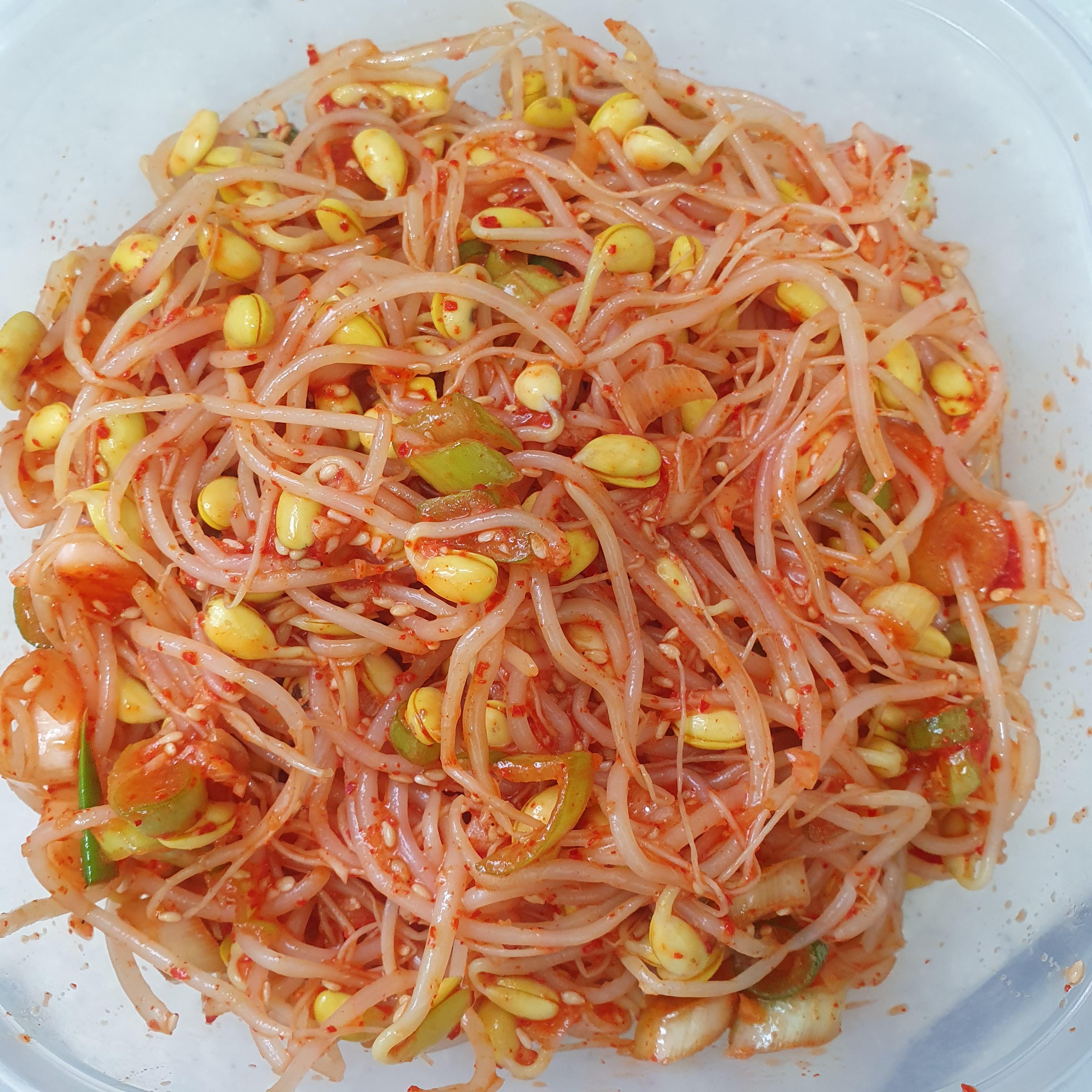 3. 콩나물에 양념 재료를 넣어 조물조물 무치면 완성입니다.