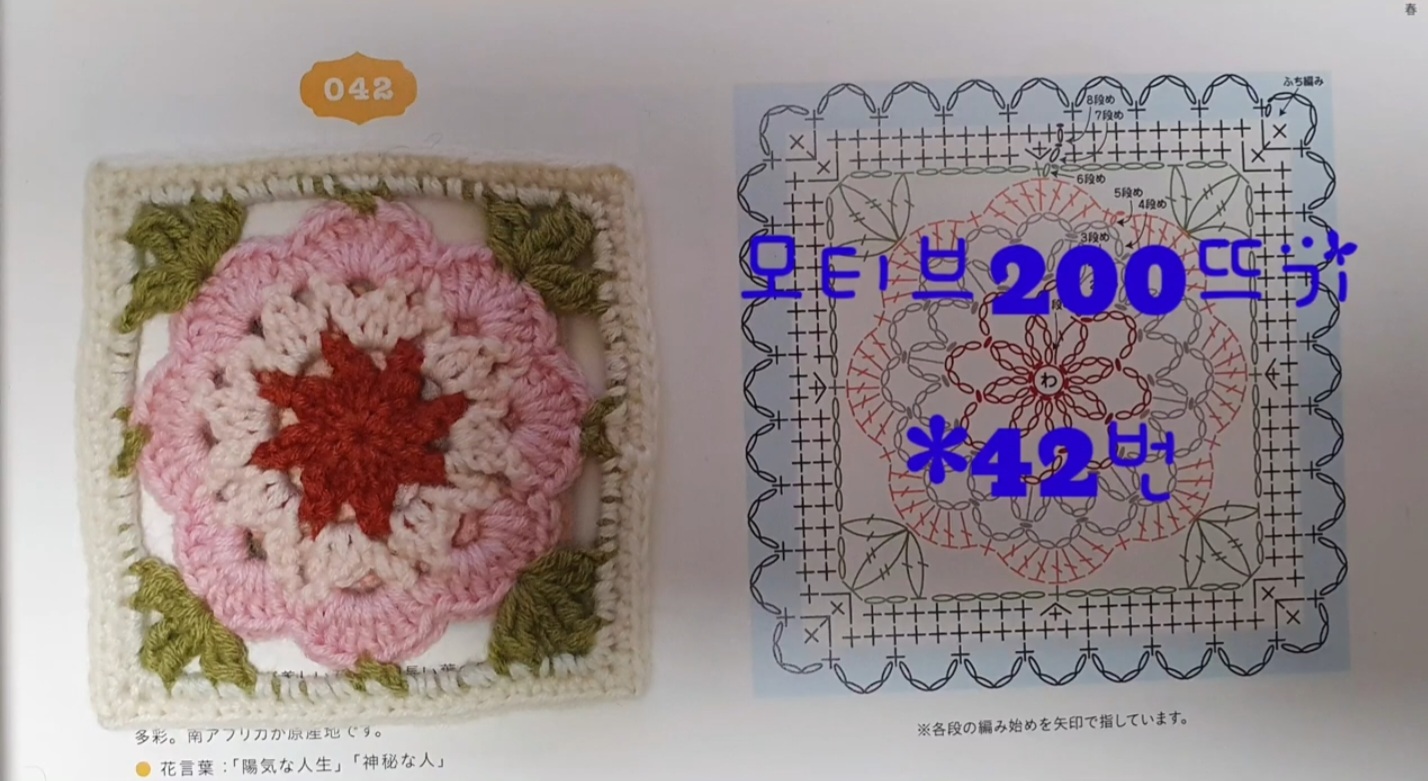 모티브200뜨기 42번/코바늘뜨기/꽃모티브뜨기/모티브뜨기