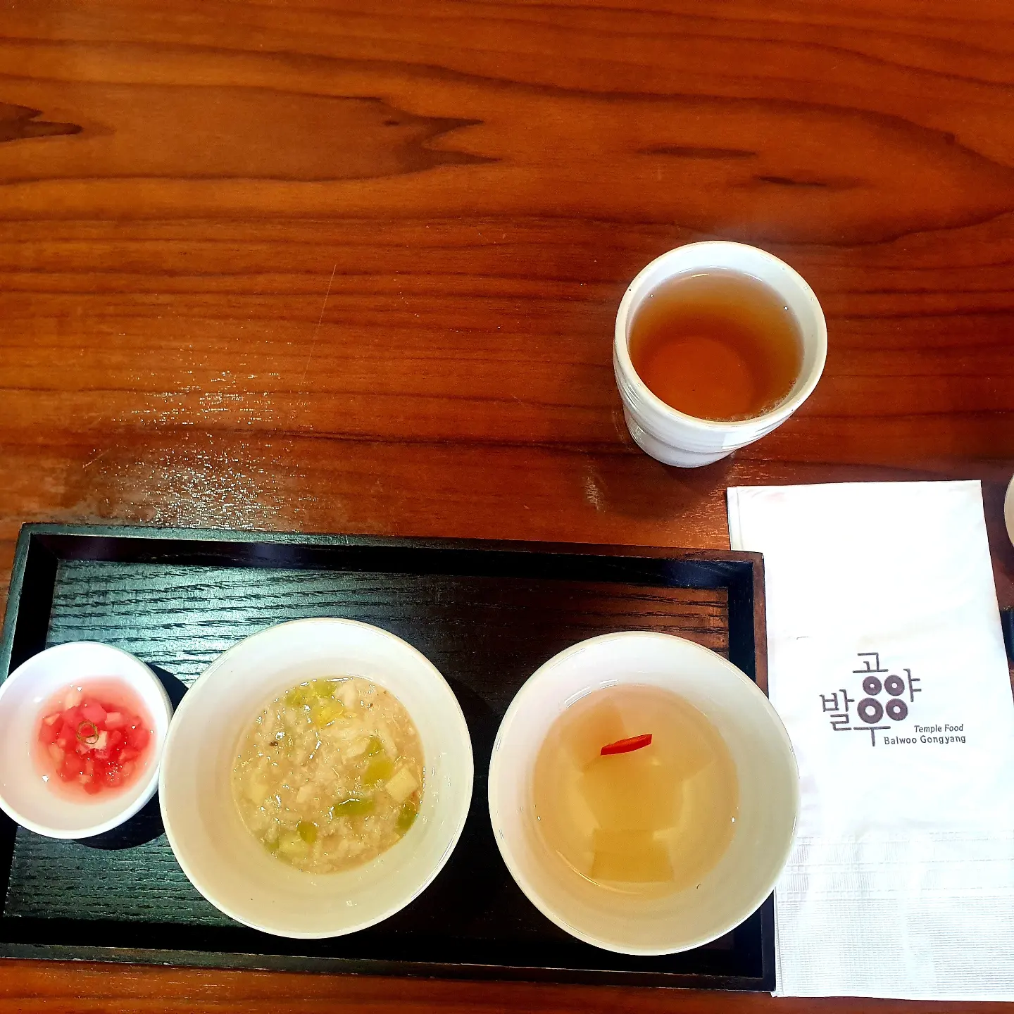 된장베이스로 만든 죽과 수박절임의 조화가 신선했어요.