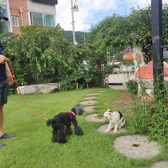 반려견 동반시 목줄을 착용하면 정원에서 맘껏 뛰어 놀아도 됩니다.