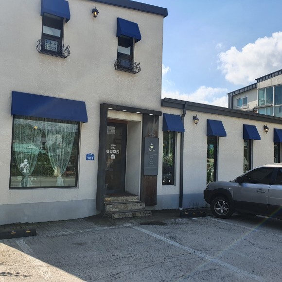 하얀과 파랑의 조화 예쁜 아기자기한 카페가 있답니다.