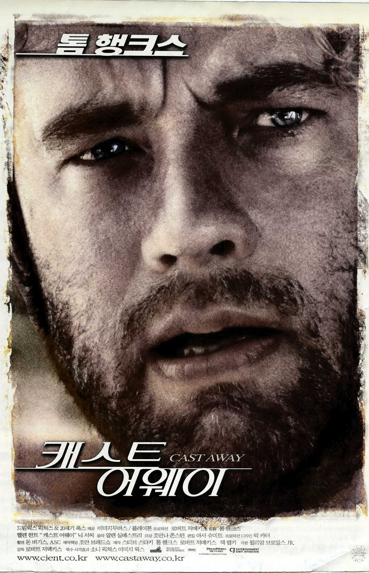 영화 <캐스트 어웨이>는 페덱스 직원이 출장 도중 비행기가 추락하면서 무인도에 표류되어 구조되기까지의 과정을 그린 영화입니다. 감독 로버트 저메키스가 연출을 맡았고 주인공 역으로 톰 행크스가 출연을 하였습니다. 영화 대부분은 톰행크스 혼자 이끌어 가는 1인극 영화라고 할 수 있습니다.