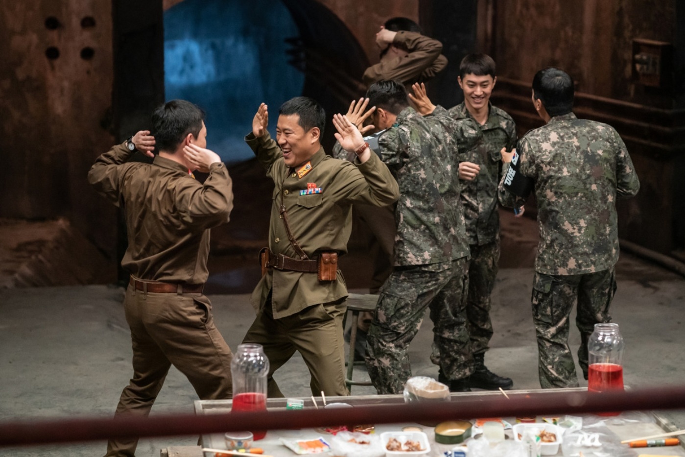 우연히 1등 당첨 로또를 주운 말년 병장 박천우는 심장이 터질듯한 설렘도 잠시, 순간의 실수로 바람을 타고 군사분계선을 넘어간 로또. 바사삭 부서진 멘털을 부여잡고 기필코 다시 찾아야 한다고 다짐을 박천우. 한편 남쪽에서 우연히 넘어온 1등 당첨 로또를 주운 북한 병사 리영호는 이것이 남조선 인민의 고혈을 쥐어 짜내는 육사오라는 종이 쪼가리란 걸 알게 되고 그 종이가 무려 1등인 57억 당첨금이라는 걸 알게 되면서 당첨금을 바꿔야 하겠다고 다짐한 리용호. 여기에 예상치 못한 멤버들까지 합류하면서 57억 당첨금을 사수하기 위한 3:3팀이 결성되는데… 주운자와 또 주운자의 아슬아슬한 선을 넘는 지분 협상이 시작됩니다. 영화 속에서 남북한 병사, 부사관들이 공동 급수구역으로 줄인 JSA에서 모인 장면과 당첨된 로또를 어떻게 할 것인지에 대해서 이야기하고 서로 어우러지며 춤사위를 보여주고 노는 모습은 예전 영화 공동경비구역 JSA의 코미디 버전으로 영화를 만들어 보려 한 류승수 배우님의 아이디어 이기도 합니다. 그래서인지 육사오에는 공동경비구역 JSA 영화를 오마쥬 하여 떠오르게 하는 몇몇 장면이 있습니다. 누구나 한 번쯤 꿈꿔보는 로또 1등 당첨 일확천금의 행운과 기쁨을 오랜 시간 갈라진 남북의 군사분계선 군인들의 당첨금 수령을 향한 유쾌한 설정들이 배우들을 통해 과몰입시켜 줍니다. 남측 강대위, 만철, 천우와 북측 용호, 승일, 철진의 3:3 팀플레이는 상황 속 현실적인 대화들을 통해 코믹스러운 티키타카를 만들어 갑니다. 천운이 연결해 준 남북의 군인들이 어떻게든 당첨금을 확보하기 위해 고군분투하는 장면들과 서로 교환된 채 생활하는 천우와 용호의 행동들은 웃음 폭탄을 연달아 터트려주고, 만철의 서울행은 웃음을 멈출 수 없게 해 줍니다. 정말 순수하게 웃음을 위해 몸을 내던진 배우들의 노력이 빛을 발해 주는 듯하고, JSA에 대한 남다른 접근과 우리나라를 강타한 역주행 노래 롤린 춤, 독일어 장면 등은 정말 번뜩이는 발상과 아이디어에 박수를 보냅니다. 적재적소의 깜짝 출연진들도 한몫을 했는데 오랜만에 보는 박희진 님과 윤병희의 등장 만으로 폭소를 유발해 줍니다. 남북의 이념 체제에 따른 갈등보다 누구나 잘 살고 싶은 마음을 로또라는 소재와 코미디의 장르가 만나 인간적인 웃음을 전달하며 이러한 설정이 신선함과 새로움을 대중들에게 선사한 것 같습니다. 정직한 전개와 웃음에만 초점을 맞춰 뻔함이 아닌 마음 편하게 생각 없이 웃을 수 있는 알찬 시간을 만들어준 영화라고 생각합니다. 오랜만에 가족 또는 친구들과 꼭 함께 보고 싶은 영화로 출연진들의 연기 구멍 없어 억지웃음이나 신파, 저질 몸개그 또한 없이 자연스러운 연기로 유쾌하게 관람할 수 있는 영화로 추천하게 됩니다. 여기까지 영화 육사오 리뷰였습니다.