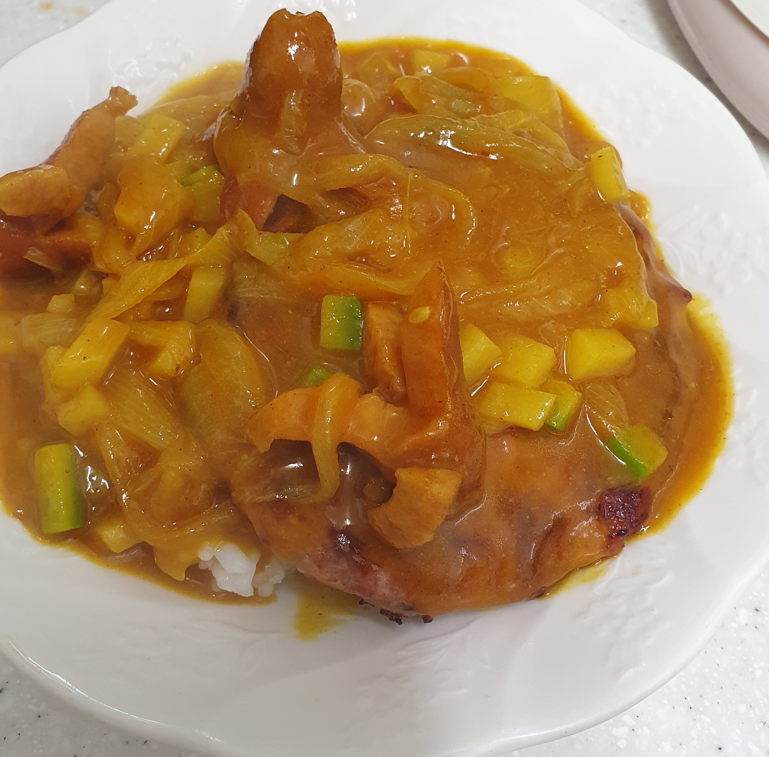 떡갈비 카레덮밥 완성했습니다.