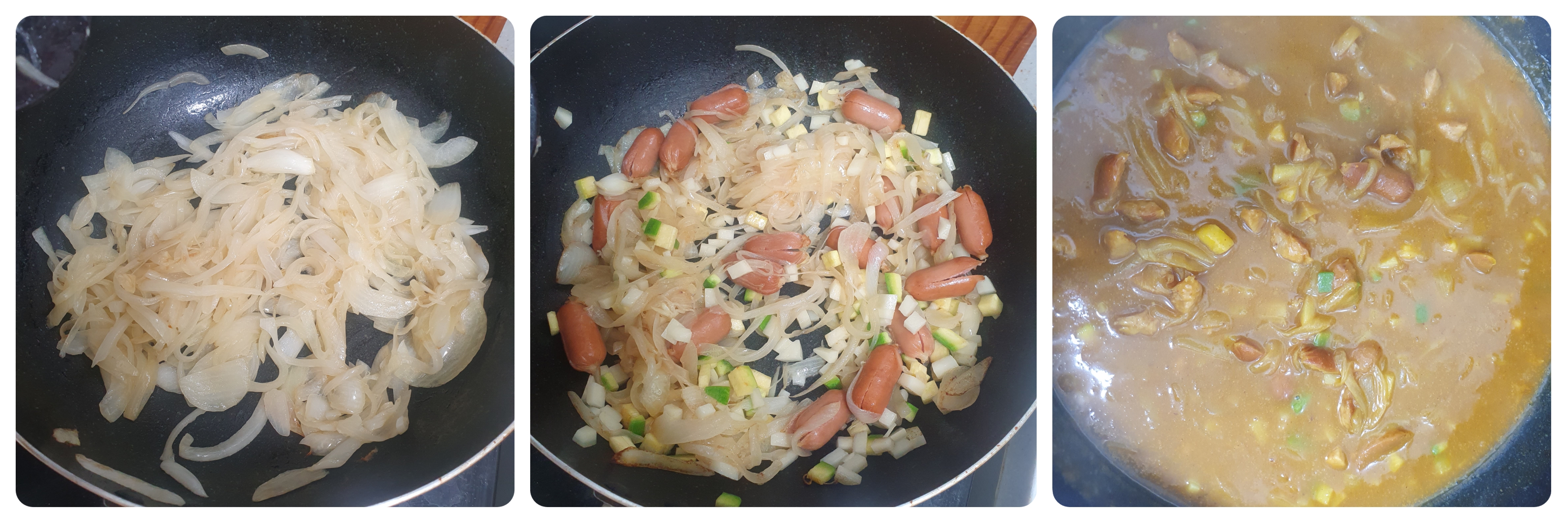 재료 : 오뚜기 백세카레 1봉, 양파 2개, 올리브 오일 조금, 냉장고에 있는 야채나 햄, 소시지, 닭고기 등 아무거나 준비해 주시면 됩니다.