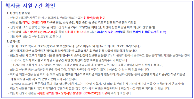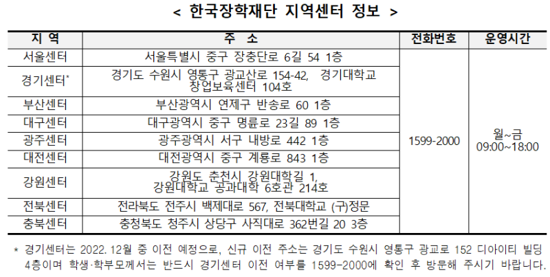 * 궁금하신 내용이나 상담이 필요하시다면 한국장학재단 지역센터 정보를 확인하시고 전화로 문의하시기 바랍니다.