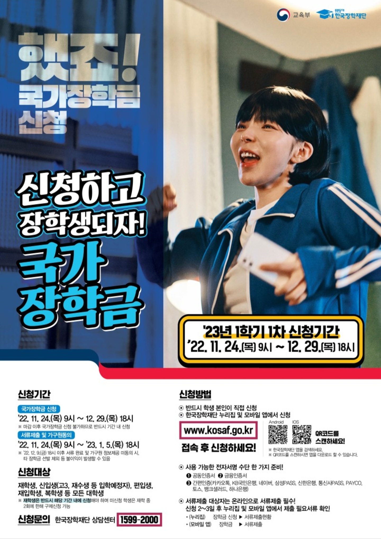 2023년 1학기 1차 국가 장학금 신청하세요.