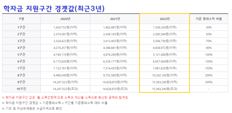 국가장학금 소득분위 기준